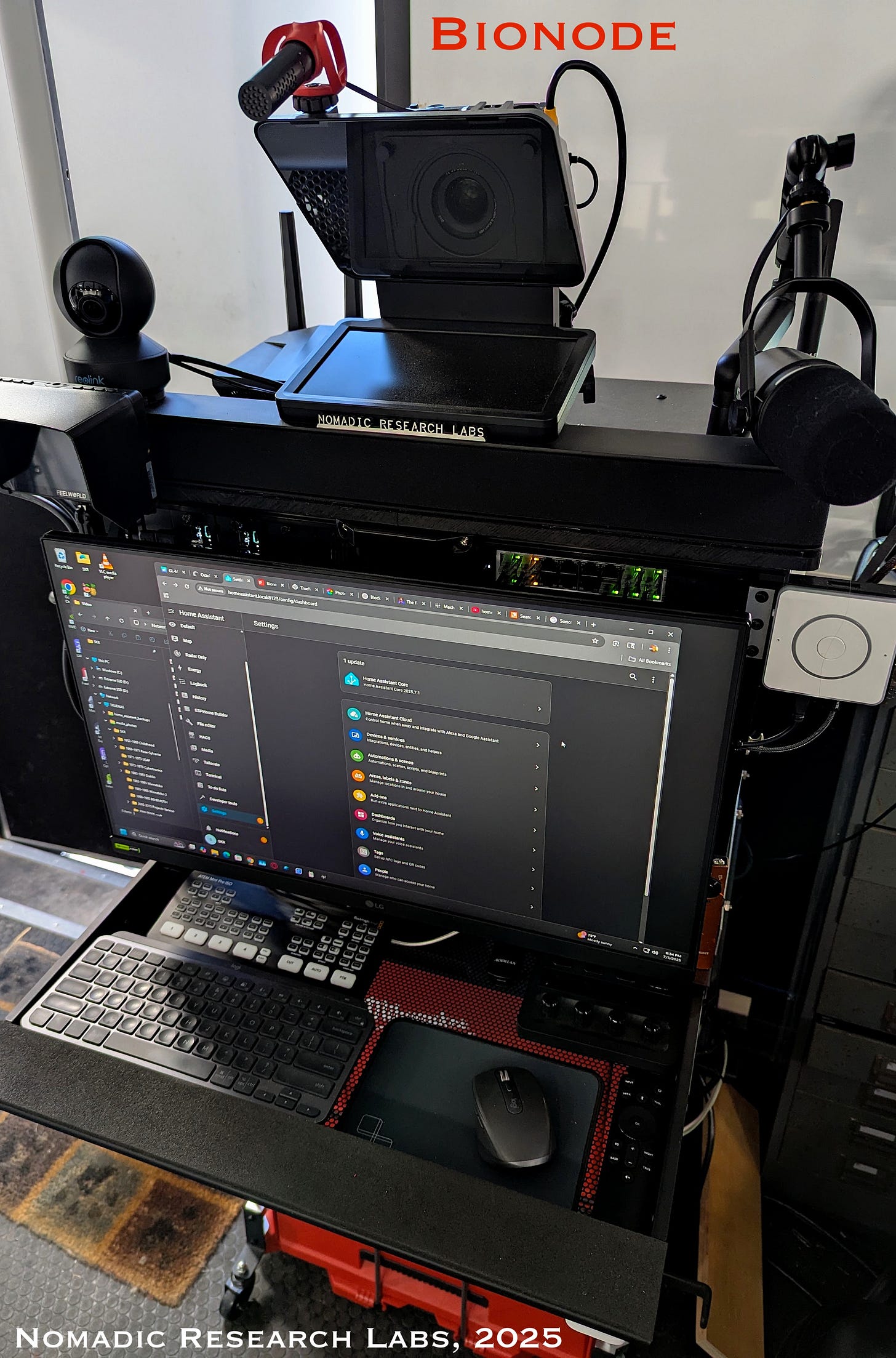I’ve been a ham for most of my life and have a deep fondness for radio. All network-enabled comms are integrated into Bionode, and I moved my full-size rig and test gear racks into the mothership.