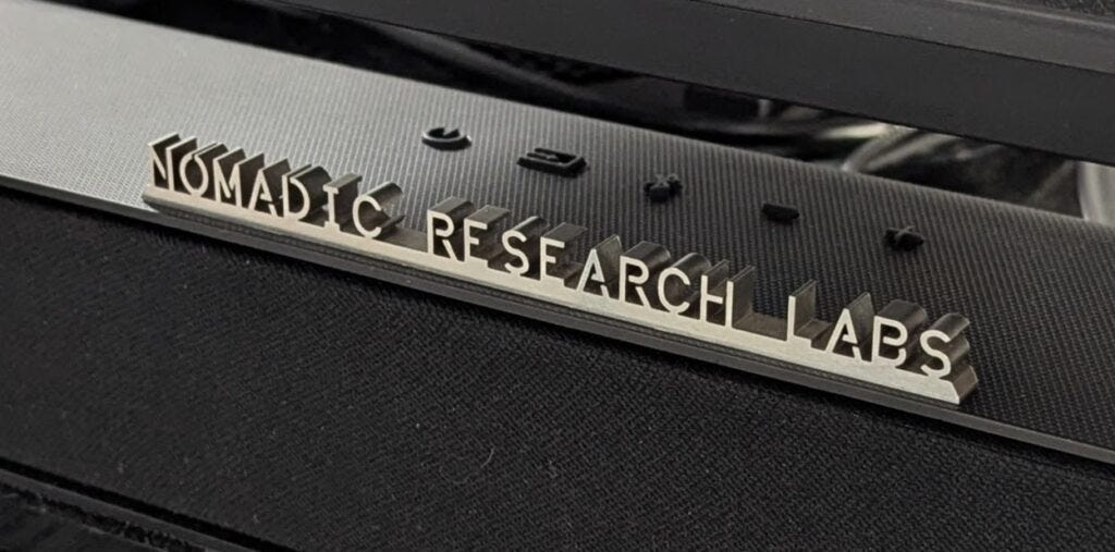 Our next issue will introduce the Nomadness mothership, a 24-foot life-support pod that hosts Bionode in a comfortable workspace, cranks out solar power with generator backup, supports meatspace needs, and provides a capable R&D lab for electronic and mechanical projects. This gives it power, maintenance, protection, and mobility… but they are otherwise independent.