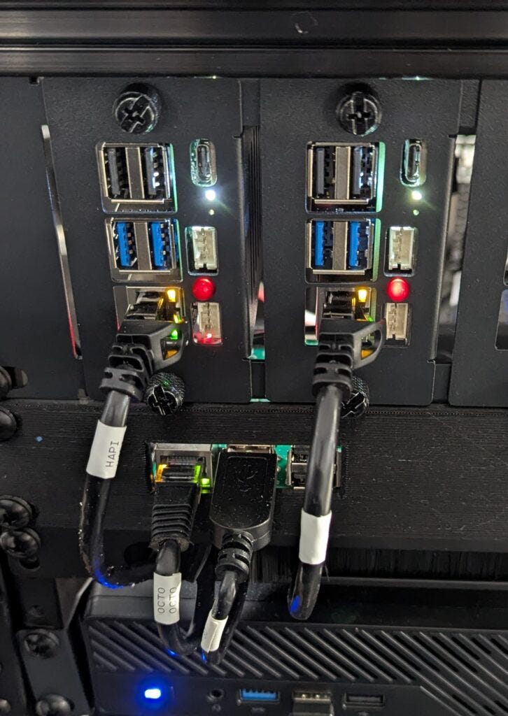For a while I was sure the solution would be an M4 Mac Mini in 3D-printed rackmount, as I wanted an excuse to buy AI-friendly unified memory. But once I realized how often I need an external laptop to poke at the KVM (and how Macs don’t like to have their consoles switched) the more practical solution was to keep a MacBook Pro around… doubling console space.